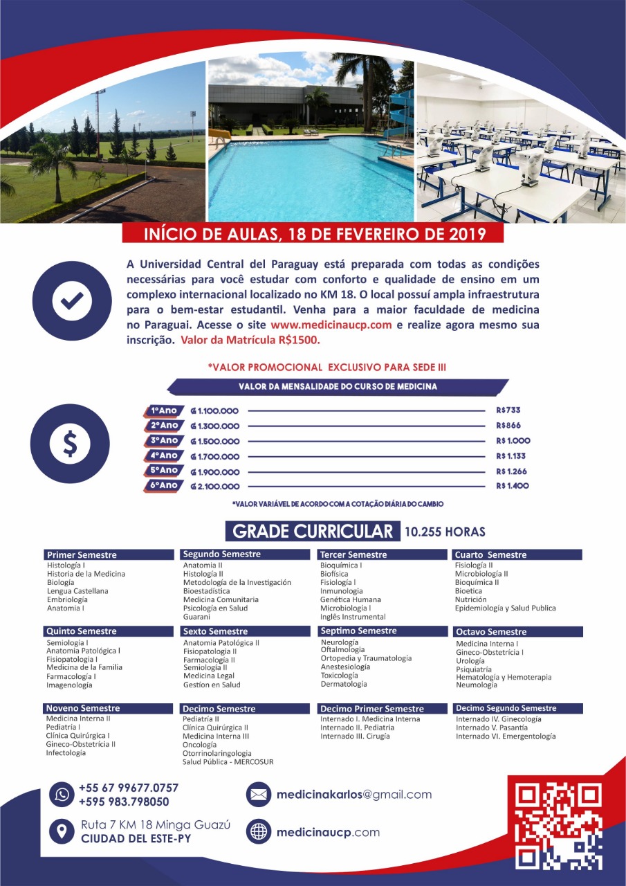Com muito esforço, orgulho e dedicação a  Universidad Central del Paraguay disponibiliza mais um nova sede, se tornando a maior faculdade de medicina no Paraguai em infraestrutua e qualidade de ensino.